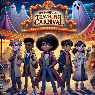 When a mysterious carnival reappears in their small town after being missing for decades, a group of five kids must uncover its dark secrets before it's too late. Ethan, the adventurous leader; Trey, the determined boy; Luis, the talented artist; Dakota, the brave problem-solver; and Violet, the magician's apprentice with a family history tied to the carnival, band together to unravel the eerie mysteries lurking within the carnival's tents and attractions.