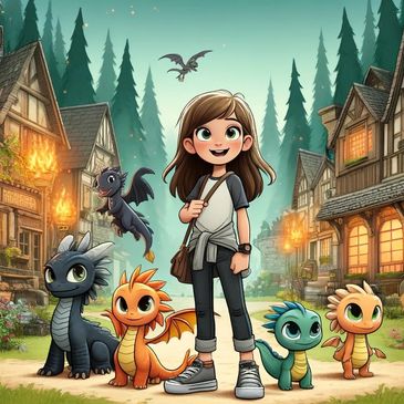 When twelve-year-old Maxine "Max" Wilder discovers dragon eggs on her doorstep, her ordinary life turns extraordinary. As the eggs hatch, Max becomes the caretaker of mischievous dragonlings: Draco, Ember, Blaze, and Sapphire. With the help of the town's eccentric librarian, Max navigates the chaos of raising dragons. Filled with adventure, heartwarming moments, and magical mishaps, Max's journey teaches her valuable lessons about friendship, responsibility, and the magic of everyday life.